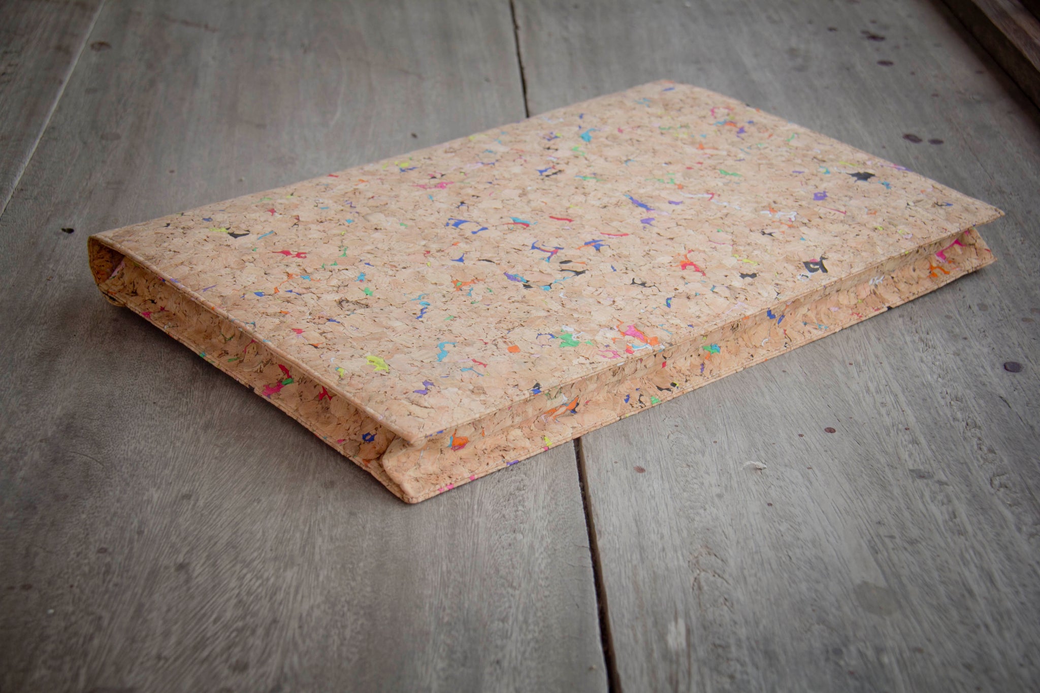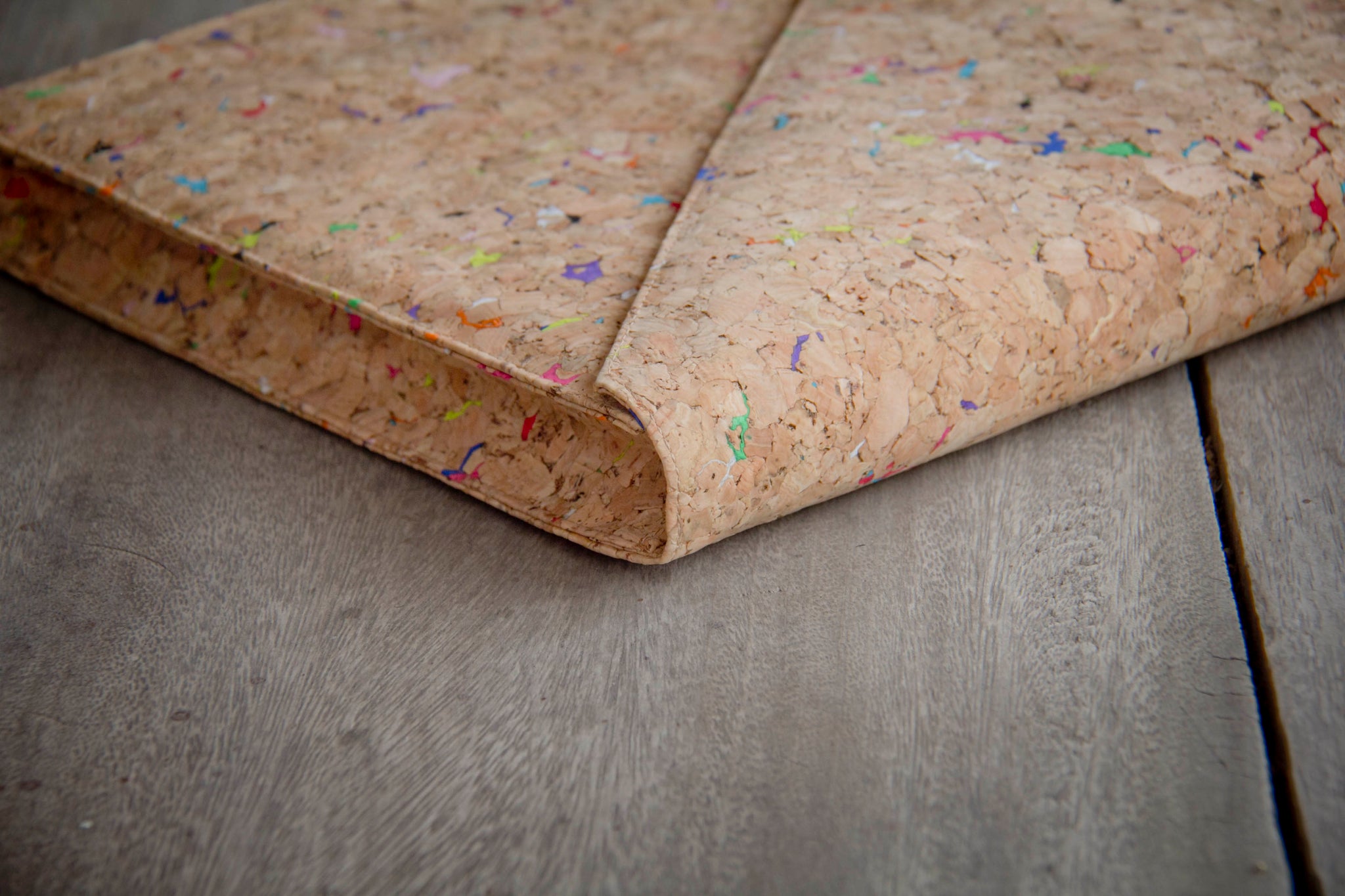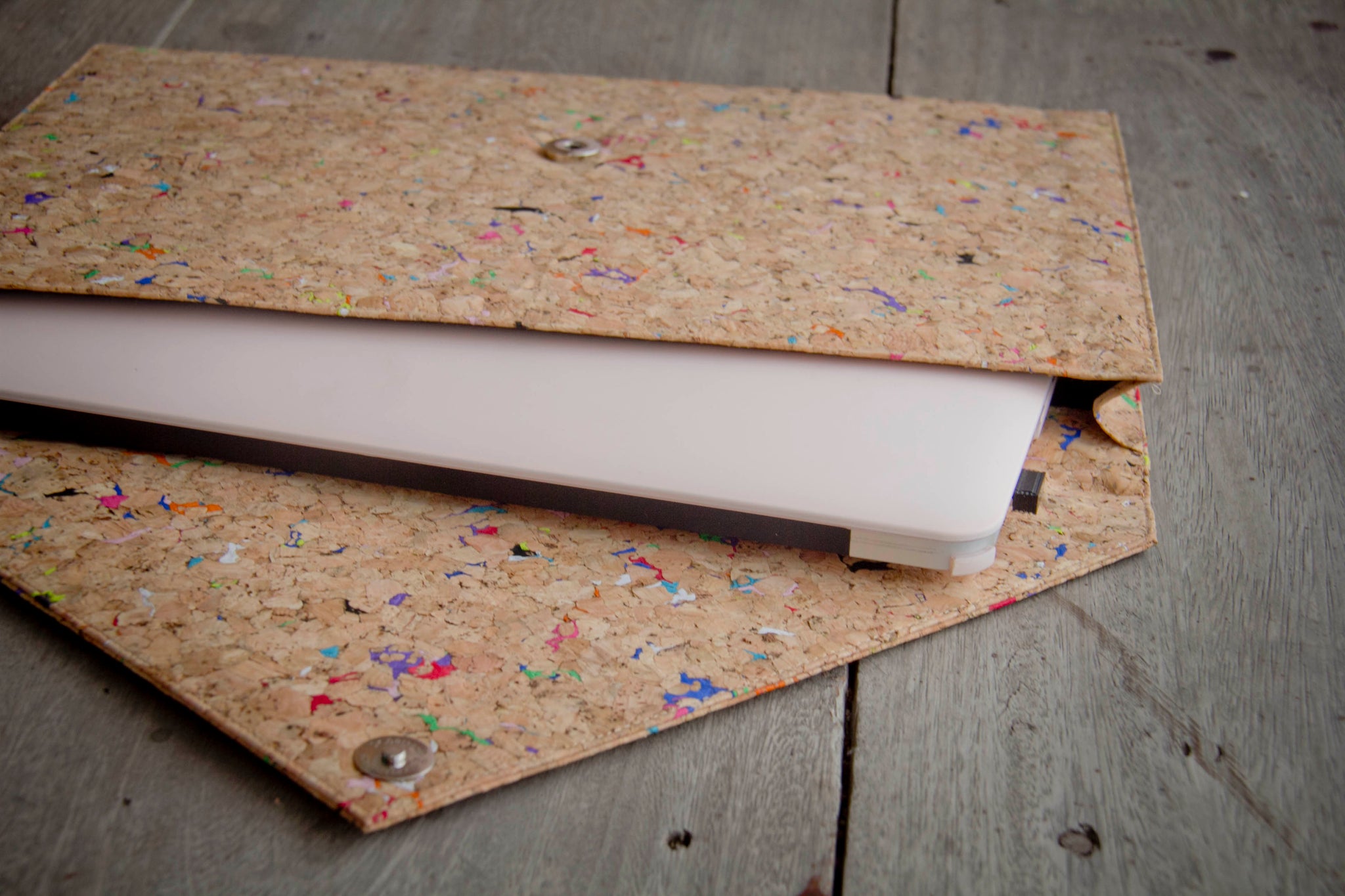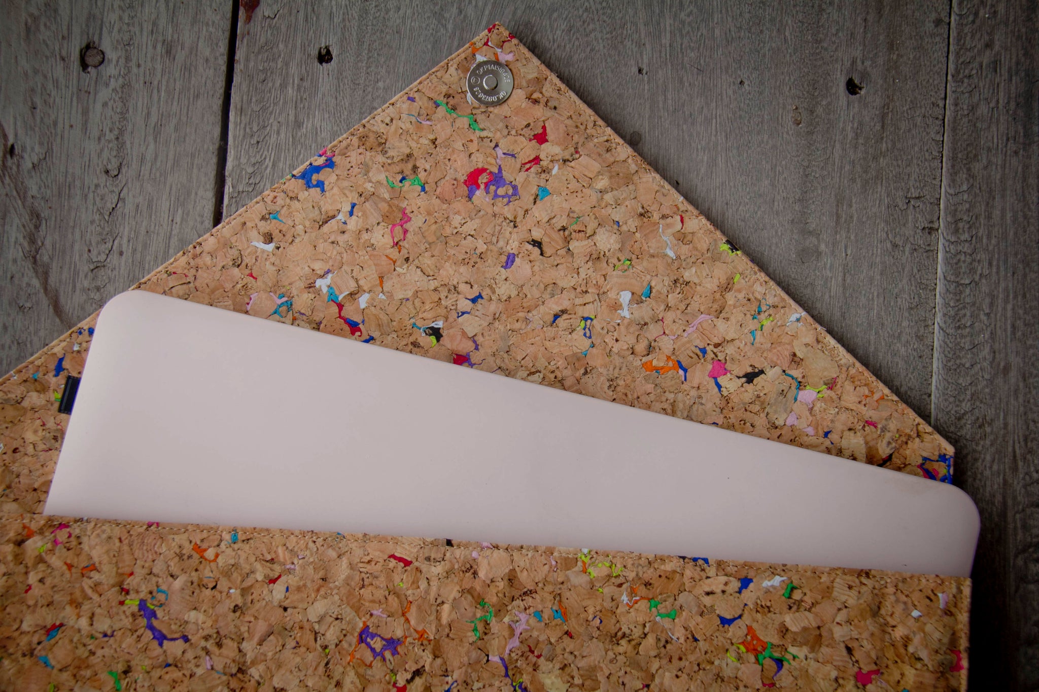 Nachhaltige vegane Laptoptasche 13–14" aus Kork – MacBook Hülle, handgemacht mit Magnetverschluss, farbigen Akzenten
